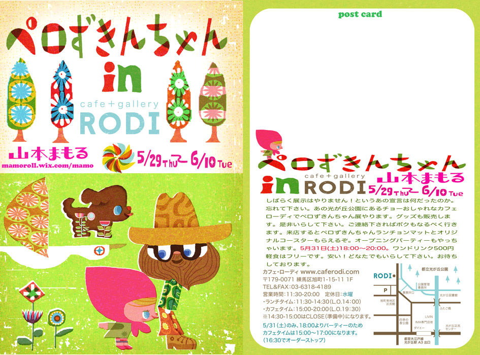 ペロずきんちゃん展やります。5月29日(木)〜6月10日(火)までです。今壁を埋め尽くすべき作品を作っています。グッズも少々出します。期間中来て下さった方にはオリジナルコースターとランチョンマットをもれなく差し上げます。ついでにオープニングパーティーもやっちゃいます。5月31日(土)18時〜20時です。ワンドリンク500円。軽食などはフリーです。是非どなたでもいらして下さい。お待ちしております。